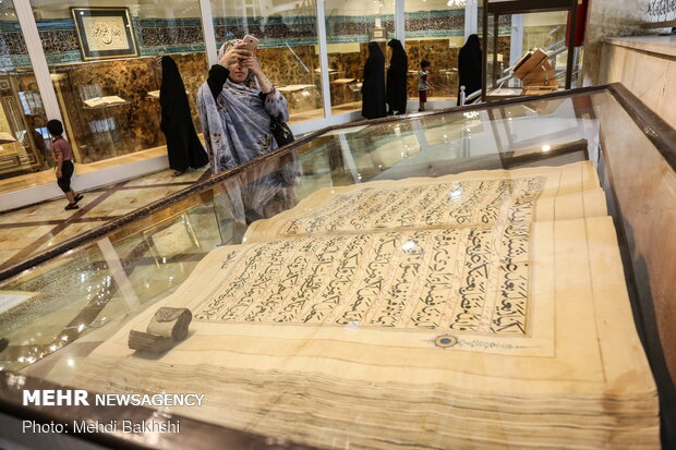 مسئول موزه حرم مطهر افزود: قرآن ثبت ملیشده به خط محقق در دوره سلجوقی (کد ۱۲۲۷)، زیارتنامه زرین قاجاری، ۱۶ سکه تاریخی شامل سکه ضرب قم در سال ۷۷۰ ق و سکه مأمون عباسی با ذکر لفظ “امام”، مجموعهای از سنگهای قیمتی مزین به اسماً متبرک و نیز گردنبندها، قندیلها، کمربندهای مرصع و انگشترهای تاریخی از دیگر گنجینههای به نمایش درآمده است.