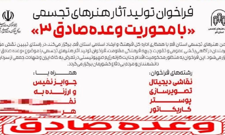 سلطانی، مدیر انجمن هنر‌های تجسمی استان قم، اعلام کرد که هنرمندان می‌توانند آثار خود را در قالب‌های نقاشی دیجیتال، تصویرسازی، پوستر و کاریکاتور با محوریت «وعده صادق ۳»، جنایات رژیم صهیونیستی، و شهادت سرداران، دانشمندان و مردم مظلوم ایران ارسال کنند.