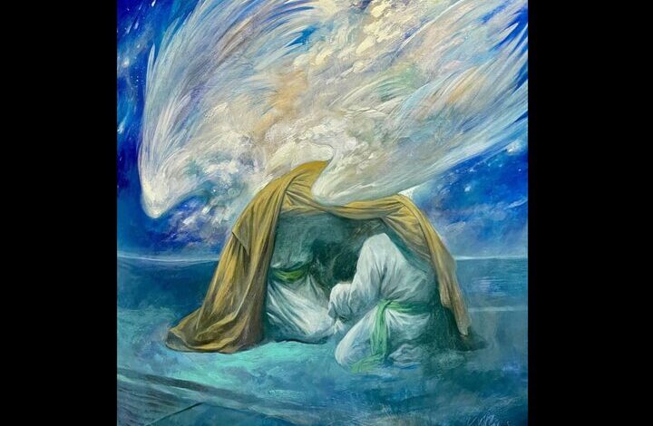 حسن روحالامین نقاشی جدیدی با موضوع پنج تن آل عبا و «حدیث کساء» رونمایی کرد.