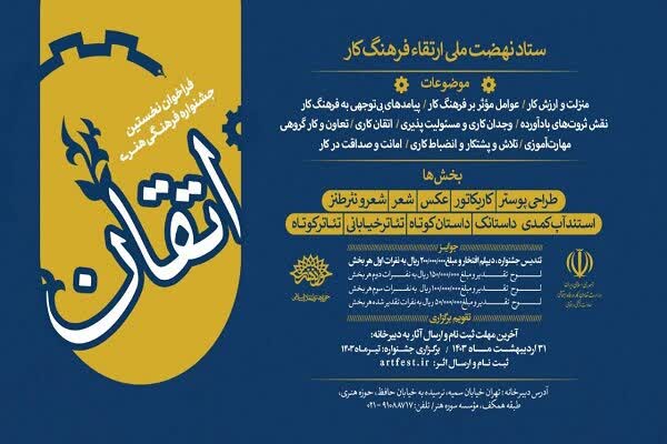 فراخوان نخستین جشنواره فرهنگی- هنری «اتقان» با هدف ارتقای فرهنگ کار و تلاش و تبدیل آن به گفتمان عمومی منتشر شد.