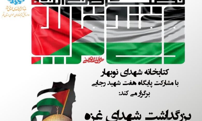 به میزبانی کتابخانه عمومی شهدای نوبهار، ویژه برنامه «بزرگداشت شهدای غزه» همراه با نمایشگاه آثار هنری و عکس ویژه نوجوانان برگزار می شود.
