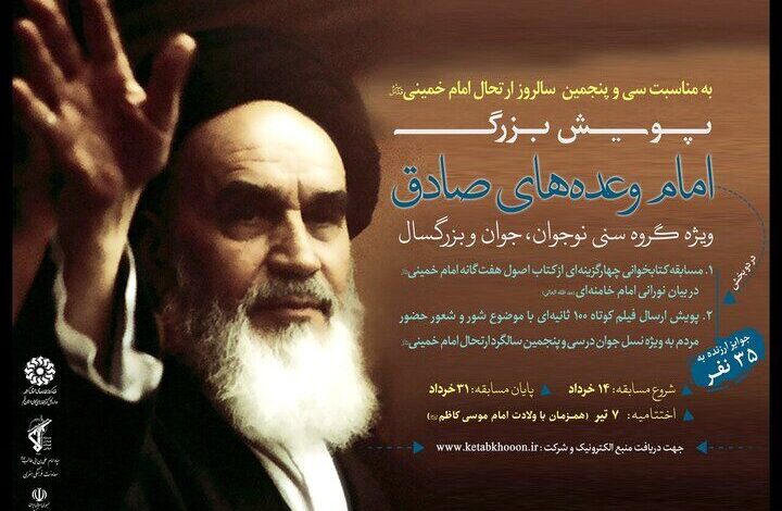 به گزارش پایگاه خبری هنرقم به نقل از خبرگزاری مهر، همزمان با سی و پنجمین سالروز ارتحال امام خمینی (ره) با همکاری اداره کل کتابخانه های عمومی استان قم، معاونت فرهنگی و هنری سپاه امام علی بن ابی طالب (علیه السلام) و معاونت فرهنگی، اجتماعی و زیارت استانداری قم، پویش بزرگ «امام وعده‌های صادق» ویژه گروه سنی نوجوان، جوان و بزرگسال آغاز شد.